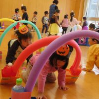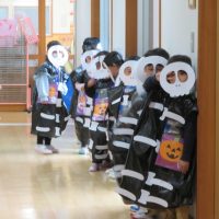 1日早いけれど、年少きく組の子どもたちがハロウィーンパーティーをしました。園庭に隠されたどんぐりキャンディー・・・どこにあるかな・・・その後トリックオアトリート!と言いながら職員室にやってきてお菓子をもらって帰りました。 …