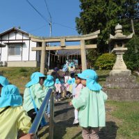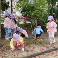 熊野神社まで歩いて行きました。 森の中には小さいどんぐり、大きいどんぐり、たっくさん落ちていて“どんぐりバック”はもうパンパン!ちょっと疲れたけれど、帰りも頑張って歩きました。