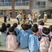 コーラス部のお母さん方の歌とクイズとトーンチャイム(^^♪ サンタさん登場に子どもたち興奮! 一人ひとりプレゼントをもらって、ニッコニコ!(^^)!