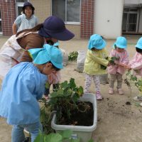 今日はプランターで育てていたサツマイモを掘りました。長ーい長ーい蔓を引っ張って大きなお芋や小さなお芋、まるーい形バナナの形、蔓がちぎれても土の中に何本も残っていたり・・・みんな一生懸命掘りました。