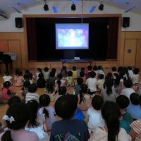 9月の誕生会の後に交通安全の集いで、交通ルールに関する映画を見ました。子どもたちも一生懸命見ていました。交通ルールを守って事故にあわないように気を付けようね。